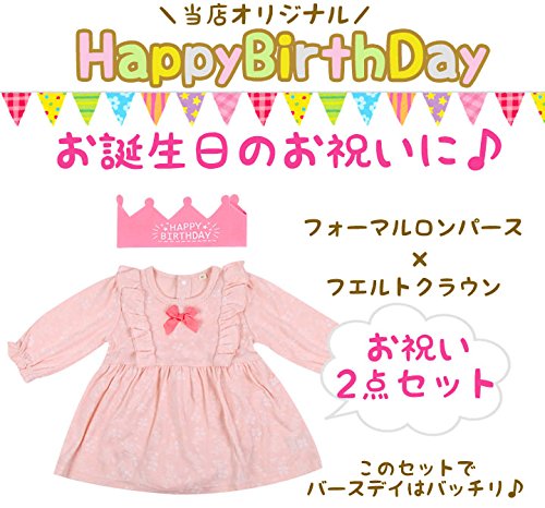 60-90cm 1歳2歳 女の子 お誕生日服セット バースデーロンパース【249260】 70cm ピンク