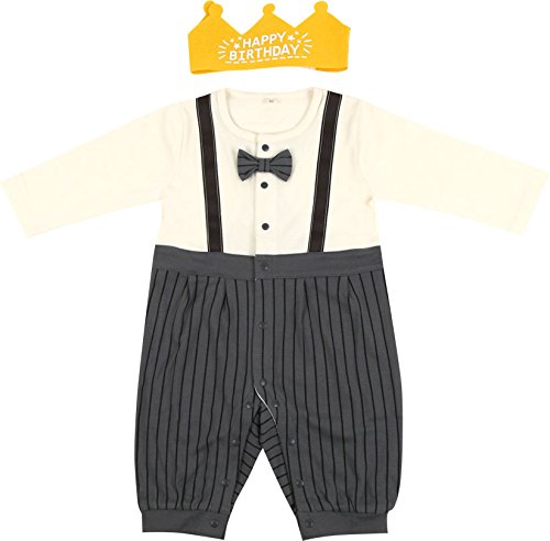 60-90cm 1歳2歳 男の子 お誕生日服セット バースデーロンパース【249259】 80cm チャコールグレー
