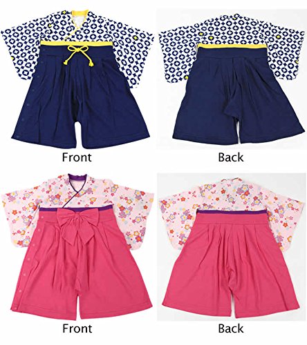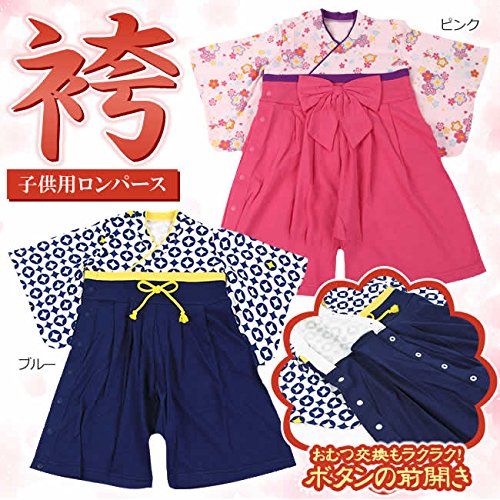 ベビー フォーマル 袴ロンパース【p2521】 70cm ブルー