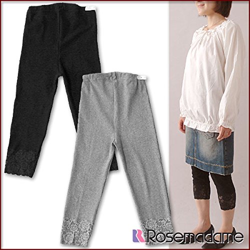 5484 マタニティ レギンス ☆おしゃれな裾レース スパッツ 【7分丈】 すっきり美脚ライン 重ね着& 冷え 防止<br/> 【ローズマダム rosemadame マタニティー】 M-L 杢グレー
