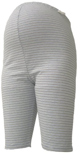 妊娠初期から産前まで着用できる5分丈のスパッツ。ウエストは結んで調整ができるゴム入り。伸縮性に優れた素材で、産後でも着用できる。