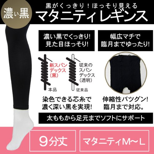 マタニティ レギンス 1558 漆黒 9分丈 UVカット 40デニール M-L ブラック