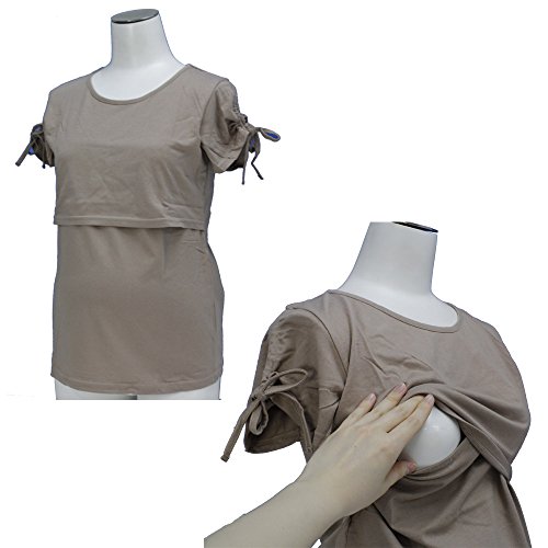 Sweet Mommy マタニティトップス 授乳服 授乳口付き Tシャツ デコルテすっきり ストレッチコットン 大きいサイズ 小さいサイズ スリムフィット 春 夏 半袖 産前産後/ライトピンク/L