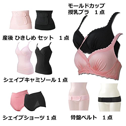 【産後すぐから使えるお得なセット!】 ①シェイプキャミソール ②シェイプショーツ ③シルクカップブラ ④骨盤ベルト ⑤産後引き締めセット 全てカラーがブラックorピンクでお選びいただけます! 通常13,000円(税込)相当が入った大変お得なセットです。 出産準備の後は、産後のセットを是非ご検討下さい!!
