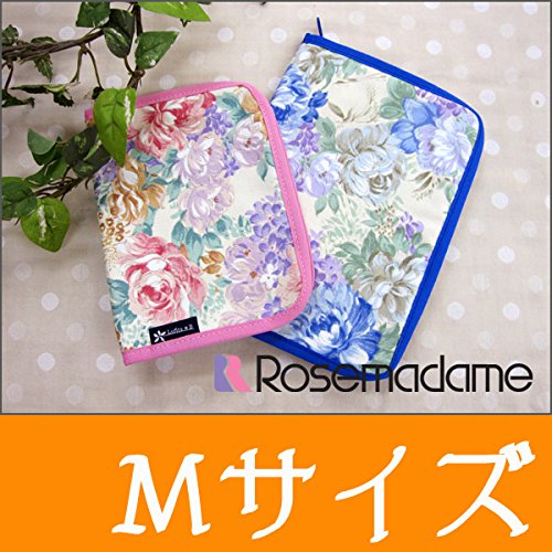 0166m 【Mサイズ】母子手帳 ケース<br/>全開ファスナータイプエレガントな花柄プリント<br/> 母子健康手帳<br/>敏感肌 【ローズマダム rosemadame マタニティー】 M Bサックス