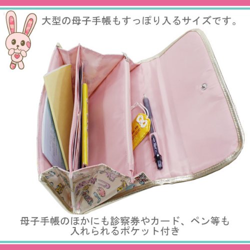 1202 【HbG・エイチビージー】 母子手帳ケース Lサイズ ジャバラ 人気ブランドの「HbG」のかわいさ満点☆ ポケット26個付き きらきらキャメろん フラワー 母子健康手帳ケース 二人用 大きい【ローズマダム rosemadame マタニティー】 L Aアニマルベージュ