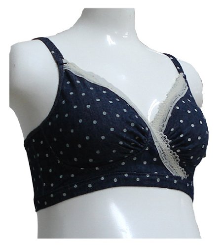 マタニティハーフトップ【授乳兼用】 伸縮性の良いストレッチデニム素材にドットがキュート! いつもよりちょっぴり大きめのドットをデニム地にプリント 仕上げに贅沢なレースをあしらいました。 マタニティーアンダーに優しさをプラスする【DENIM DOT】です。