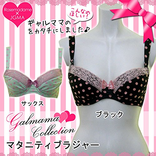 1037 【ギャルママ】 授乳 兼用 マタニティ ブラジャー 授乳ブラ 単品〔ドット〕 日本協会 コラボ<br/> マタニティブラジャー 産前 産後 【ローズマダム rosemadame マタニティー】 D80 ブラック
