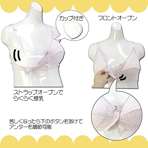 ローズマダム【rosemadame】 綿100% マタニティ ハーフトップ【ハートドット柄】 ストラップオープン フロントオープン (3L, ピンク)