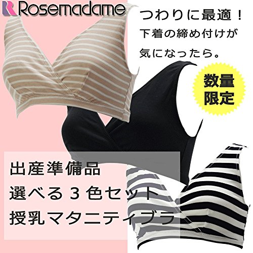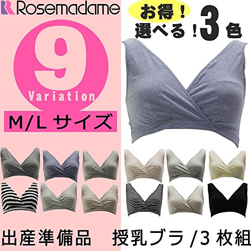 ローズマダム(Rosemadame) カラバリ豊富なマタニティハーフトップ 3枚組 [産前産後]クロスオープン《つわり対策/バストケア/授乳ブラ/出産準備》I-グレーLサイズ 118-6399-01