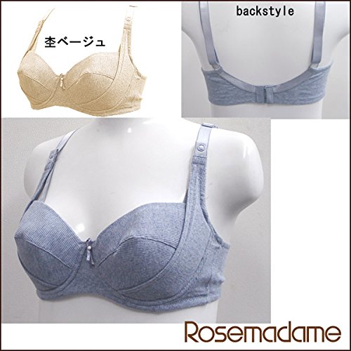 0107 肌にやさしい 綿素材の 授乳ブラ マタニティ 授乳 兼用 ブラジャー ストラップオープン ワイヤー入り<br/> マタニティブラジャー 産前 産後 【ローズマダム rosemadame マタニティー】 E80 サックス