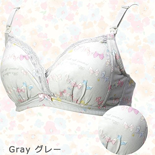 ローズマダム Rosemadame マタニティくるみんブラ ナルエー/Narueコラボ【リボン柄】授乳ブラ ストラップ&クロスオープン 産前産後 Mサイズ グレー 112-7655-01