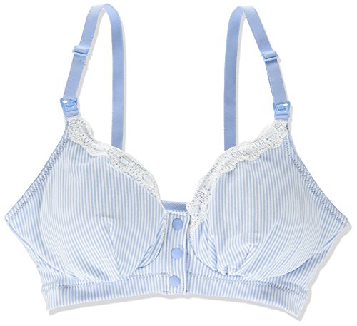 ローズマダム Rosemadame マタニティハーフトップ ナルエー/Narueコラボ【ストライプ柄】授乳ブラ フロントオープン 産前産後 Mサイズ サックス 112-7657-01