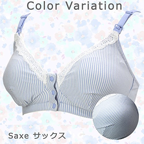 ローズマダム Rosemadame マタニティハーフトップ ナルエー/Narueコラボ【ストライプ柄】授乳ブラ フロントオープン 産前産後 Lサイズ サックス 112-7657-01