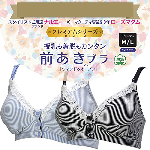 ローズマダム Rosemadame マタニティハーフトップ ナルエー/Narueコラボ【ストライプ柄】授乳ブラ フロントオープン 産前産後 Mサイズ ネイビー 112-7657-01