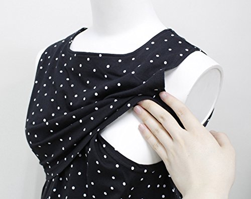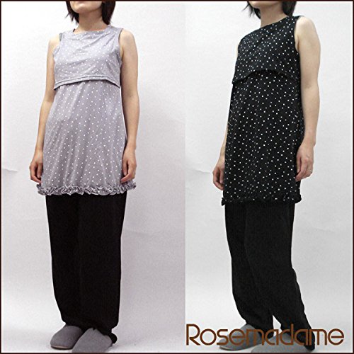 7227 マタニティ パジャマ授乳 兼用 ノースリーブ 裾フリルがキュートなドットプリント★<br/> 敏感肌 【ローズマダム rosemadame マタニティー】 M Aグレー