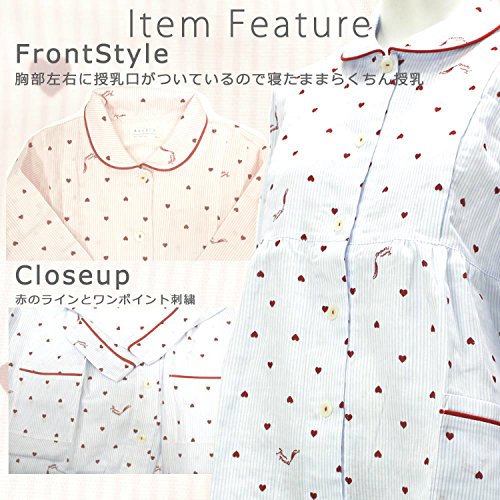 7229 Narue/ナルエーコラボ ハート【授乳口付】リラックス長袖マタニティパジャマ【ローズマダム rosemadame】 M-L B-ブルー