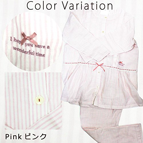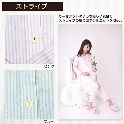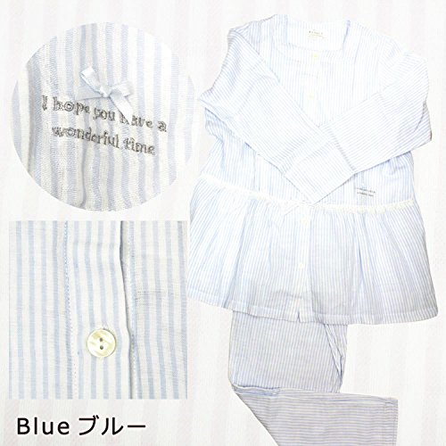7228 Narue/ナルエーコラボ ストライプ【授乳口付】リラックス長袖マタニティパジャマ【ローズマダム rosemadame】 M-L B-ブルー