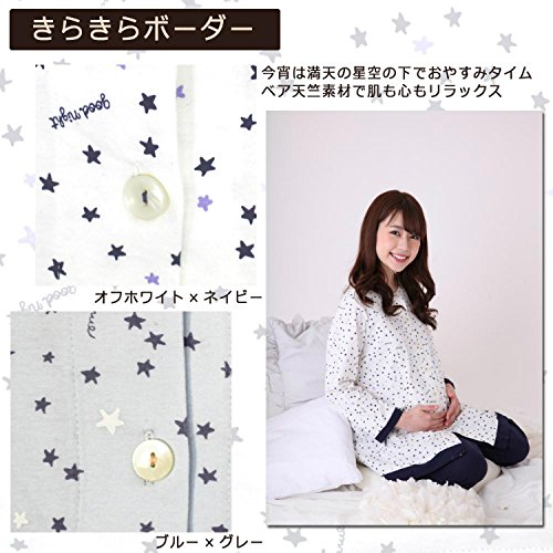 7232 Narue/ナルエーコラボ きらきらボーダー【授乳口付】リラックス長袖マタニティパジャマ【ローズマダム rosemadame】 M-L B-ブルー×グレー