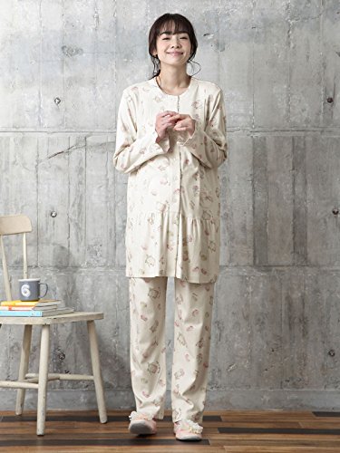 ローズマダム(Rosemadame) マタニティ パジャマ 授乳口付き Rosemadame×Narueコラボ スムース マカロン プリント ナイティ 産前 産後 長袖 前開き ナルエー M ~ L オフホワイト 22235 22235102