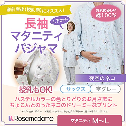 【ローズマダム】マタニティパジャマ 夜空のネコ 全開インナー ママパット 3点入りハッピーセット (マタニティM-L, A-サックス)