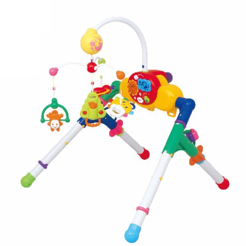 メリーゴーランドが簡単にジムに変身する便利なアイテム。メリーの飾りはラトルとしても使え、お出かけ時にはベビーカーに取り付けができる優れもの。メリーゴーランドも独自の静音設計を採用しオルゴール音にもこだわっている。お誕生から長く使っていただけるのでご出産のお祝いにも。