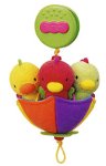 傘に3匹のヒヨコが乗ったミニサイズのメリー。ループの付け替えで2種類のメリーが楽しめる。ベビーカーなどへの取付に便利なクリップ付き。