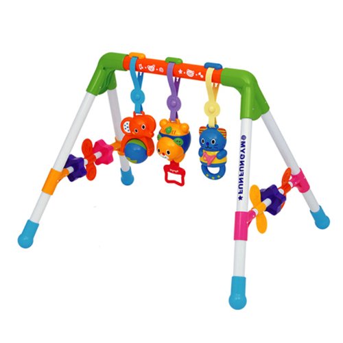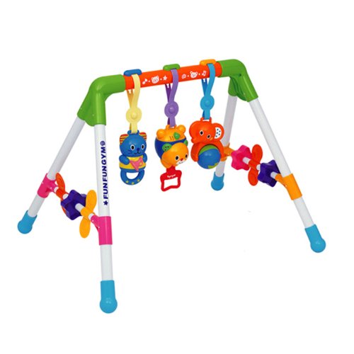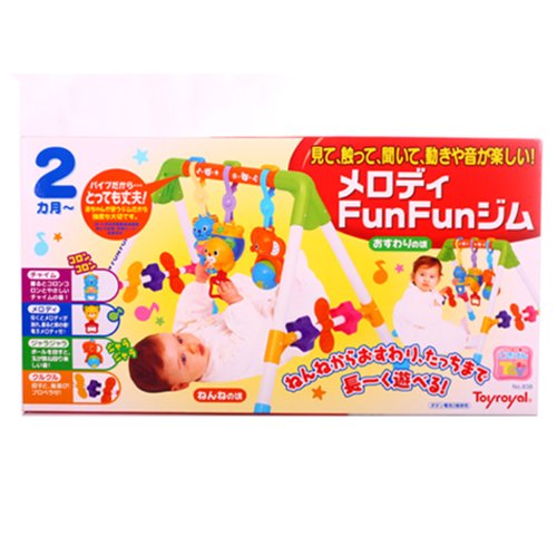 「メロディFunFunジム」は、見て、触って、聞いて、動きや音が楽しいベビージムです。ねんねからおすわり、たっちまで長く遊べます。