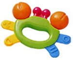 なめることが大好きな赤ちゃんのために、形や素材を工夫してあり、なめやすく、かみやすい。振るとジャラジャラ音がして、リングは持ちやすいベビーサイズ。