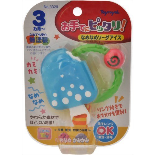 本物そっくりのソーダアイス型のかみかみ! 二重成型で新感覚。煮沸消毒ができます! クリップ付きでおでかけにも最適です。 対象年齢:3ヶ月~