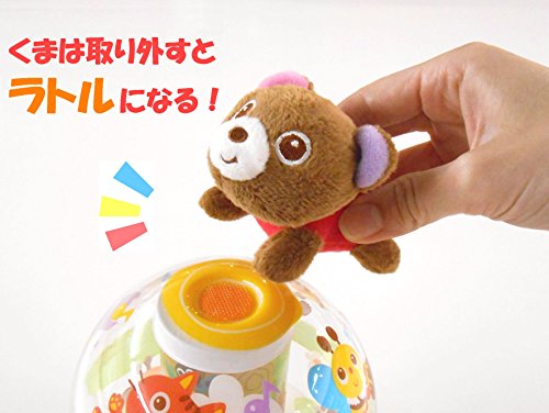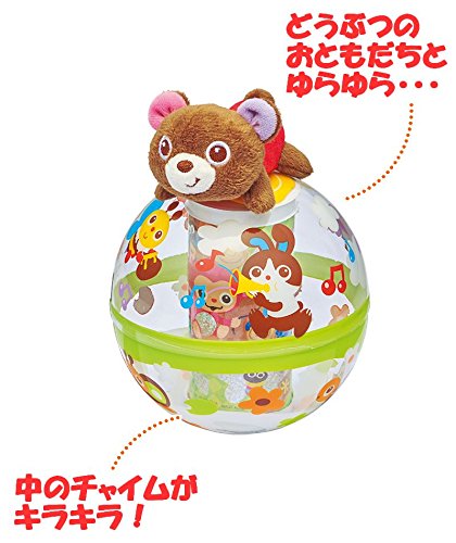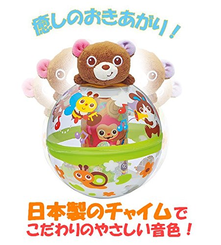 癒しのおきあがり! くまとかわいいなかまたちががゆらゆら!ゆれるたびにコロンコロン♪とやさしいチャイムの音色を奏で、イラストがキラキラ光ります。 チャイムは日本製、こだわりのやさしい音色です。 くまは取り外してラトルとしても遊んでいただけます。 手洗いのできる布製ですので清潔にご使用いただけます。 サイズ:L130mm×W130mm×H190mm 対象年齢:お誕生から