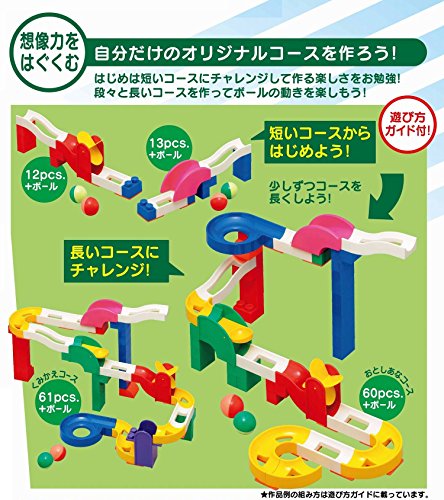 はじめてのコロコロ遊び! ■大きなパーツで組みやすい! ■6種類のギミックパーツでコースをアレンジしよう!