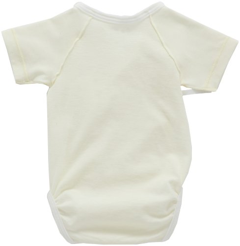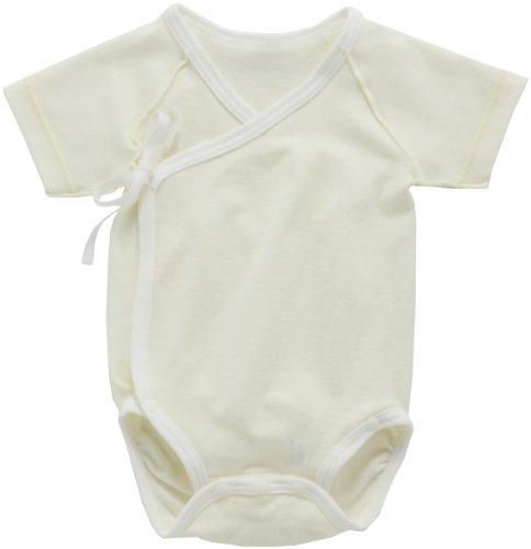 - [ベビー肌着] タテヨコに大きく伸びる成型素材。腹部の立体的なゆったり設計で、着せやすい、打合せタイプ。