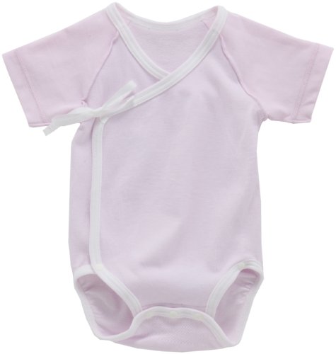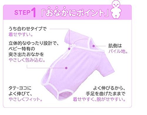 - [ベビー肌着] タテヨコに大きく伸びる成型素材。腹部の立体的なゆったり設計で、着せやすい、打合せタイプ。