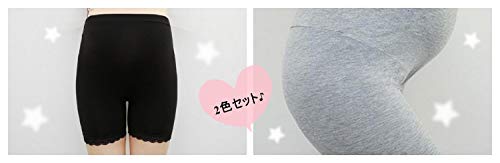 【Smile LaLa】 レディース マタニティ 妊婦 2色 セット レギンス インナー パンツ スパッツ ショート ブラック グレー ベージュ (L, ブラック&グレー)