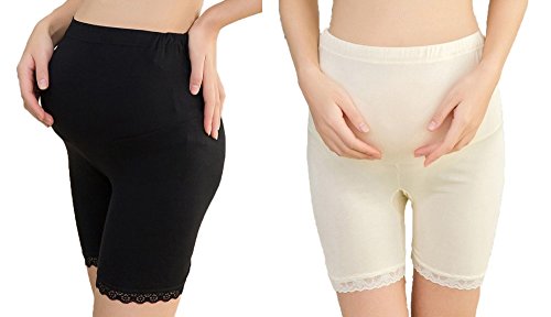 【Smile LaLa】 レディース マタニティ 妊婦 2色 セット レギンス インナー パンツ スパッツ ショート ブラック グレー ベージュ (XL, ブラック&ベージュ)
