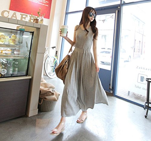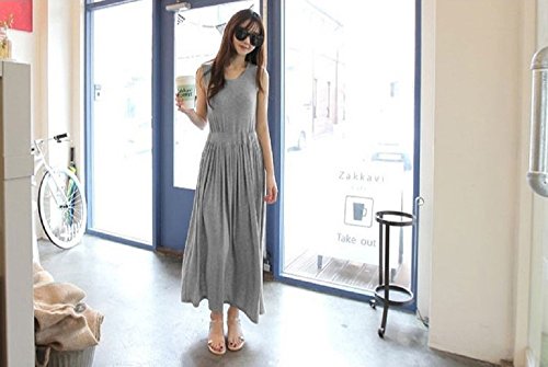【Smile LaLa】 レディース ワンピース ワンピ マタニティ 妊婦 ロング スカート マキシ ゆったり 部屋着 ノースリーブ 女性 (ライトグレー)