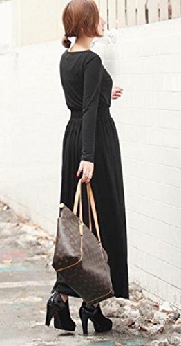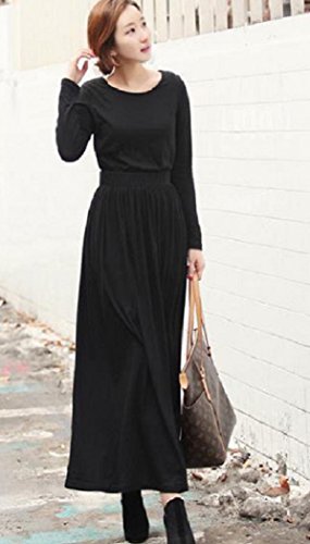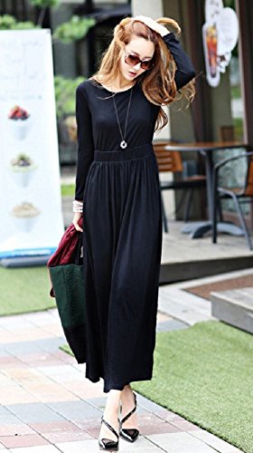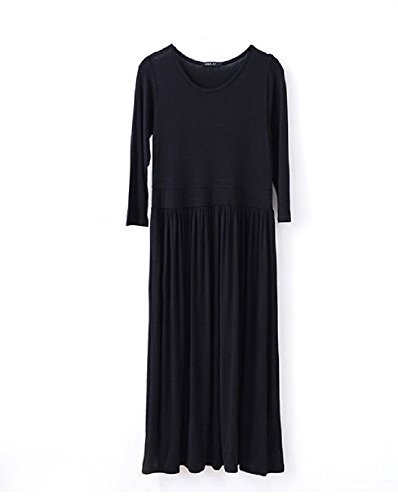 【Smile LaLa】 レディース フェミニン 楽ちん ゆったり マキシ ロング マタニティ シンプル 無地 体系 カバー スリム ワンピース (ブラック)