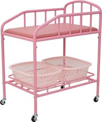●フレーム部分は優しいパステルカラーのピンクを使用しているので、乳児室にもマッチするデザインです。 ●ワゴンの下におけるカゴが2つ付属しており、変えのおむつやタオルなどを常備できます。 ●脚部分にはキャスターが付いているので移動も楽です。