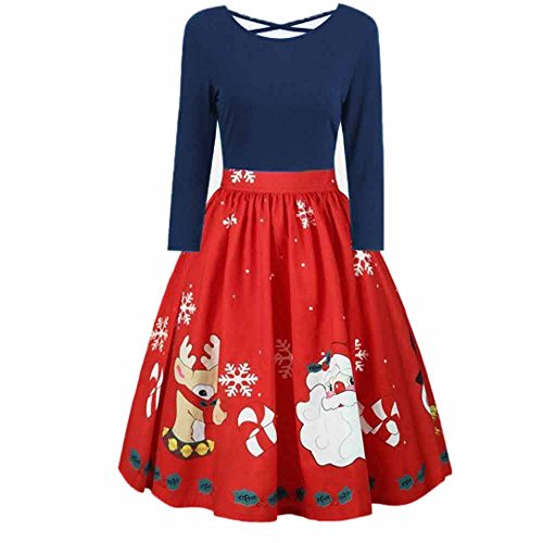 ワンピース POTOJP クリスマス周辺柄 長袖 セクシー ドレス 大人用 着痩せ オシャレ 膝丈スカート コスプレ衣装 女の子 コスチューム チュニック 女性用 衣装 クリスマス パーティー 演劇 結婚式 宴会 日常着 デート フォーマルドレス 大きいサイズ (ダークブルー, 5XL)