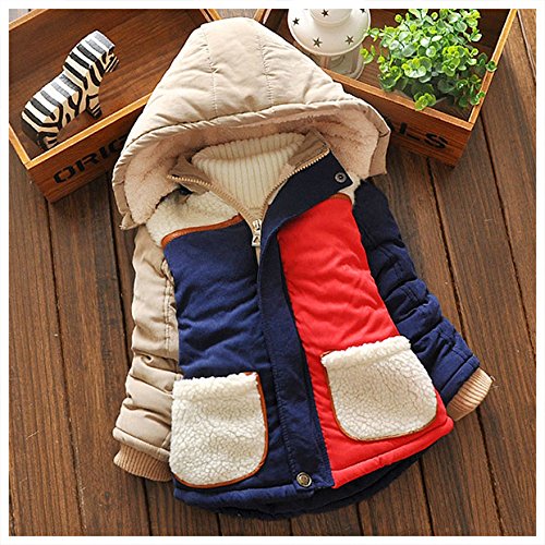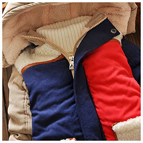 cahaya lotus(ワールド雑貨チャハヤロータス) 秋冬 アウター ベビー キッズ 女の子 男の子 女児 男児 ユニセックス 子供服 秋服 冬服 ジッパー ファスナー ジャケット ロングジャケット シンプル ボア カジュアル ストリート 可愛い カワイイ 普段使い 防寒 あったか 長袖 (L(90), ダークブルー)