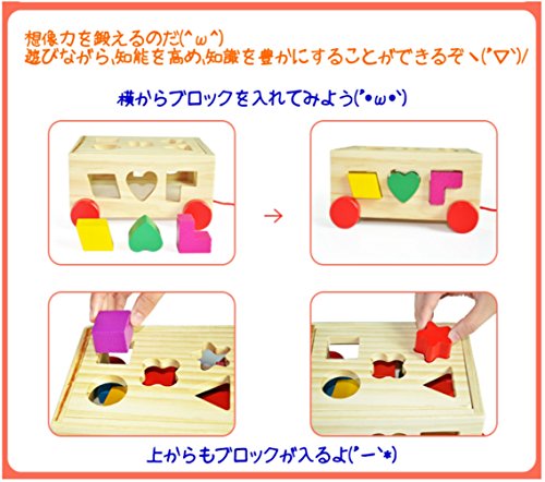 phalatina 木のおもちゃ 色彩 感覚 型はめ 積み木 知育 玩具 知性 想像 認知 形 合わせ 創造力 ロープ 引き車 パズル (積み木の車)