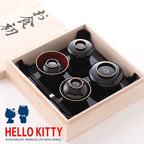 お食い初め食器セット ハローキティ 女の子 黒色 収納 桐箱