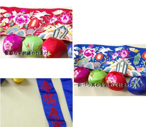 1歳のお誕生・トルチャンの時韓服チョゴリを着た時に使う帯です。 お子様用の多福と健康を願った大変おめでたい手刺繍袋が沢山付いています。 男女の性別により青と赤をご選択下さい。