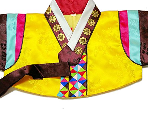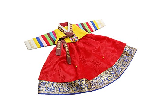 - 赤色のスカートに可愛い黄色のチョゴリを組み合わせた素敵なチョゴリ 胸や袖先に使ったお花の刺繍がとてもかわいいです。 スカートには金糸を織り込んだしっかりとした特殊生地を使っています。
