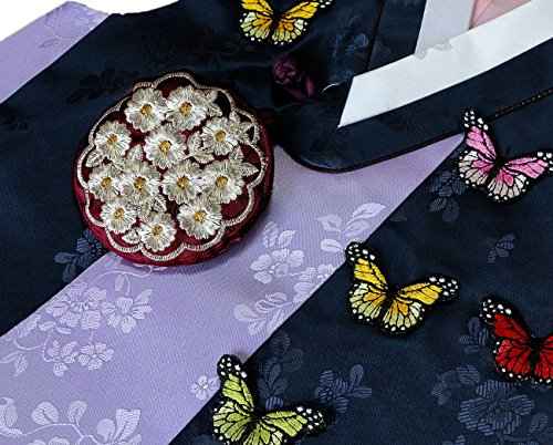 - 流行の長めのベストを組み合わせた素敵なパジチョゴリ。 胸に飾られたポイントの蝶刺繍がお洒落なデザインです。 袖先にセットンを使ったデザインは縁起がよくお客様にも人気です。