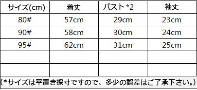 80cm:着丈57 バスト29 肩幅23 袖丈23(cm)