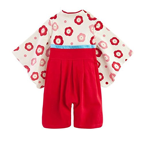 ご参考サイズ表(※±誤差1-3cm) 70cm:着丈55 バスト28 肩幅22 袖丈22(cm) 80cm:着丈57 バスト29 肩幅23 袖丈23(cm) 90cm:着丈58 バスト30 肩幅24 袖丈24(cm) 95cm:着丈62 バスト31 肩幅25 袖丈28(cm) (*サイズは平置き採寸ですので、多少の誤差はご了承下さい。) 御百日祝いやお呼ばれの席に可愛らしく、ご出産お祝いのプレゼントとしてもお薦めのきもの風 和装カバーオールです。