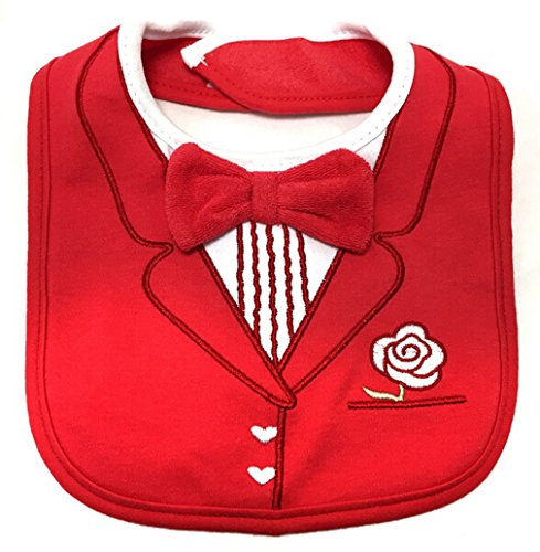 とてもカワイイ赤いスーツ(タキシード)に蝶ネクタイがついたよだれかけです!