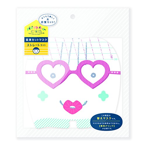既にスターターキットや変身カットマスク本体を持っている人に向けた、着せ替えマスクです。なりたい前髪デザインに合わせて買い足すことで、さまざまな前髪スタイルに挑戦できます。 できあがりの前髪イメージは、ストレートカット・ラウンドカット・アシンメトリーカットの3種類! 本品は、『ストレートカットシリーズ ハートメガネマスク』となります。